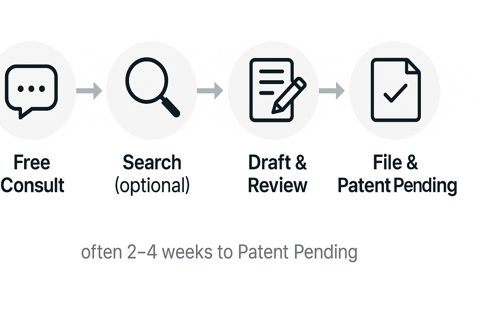 Full provisional patent application (PPA) package including formal drawings, written description, placeholder claim, and all forms. We electronically file the application for you and send a confirmation with your Patent Pending number.